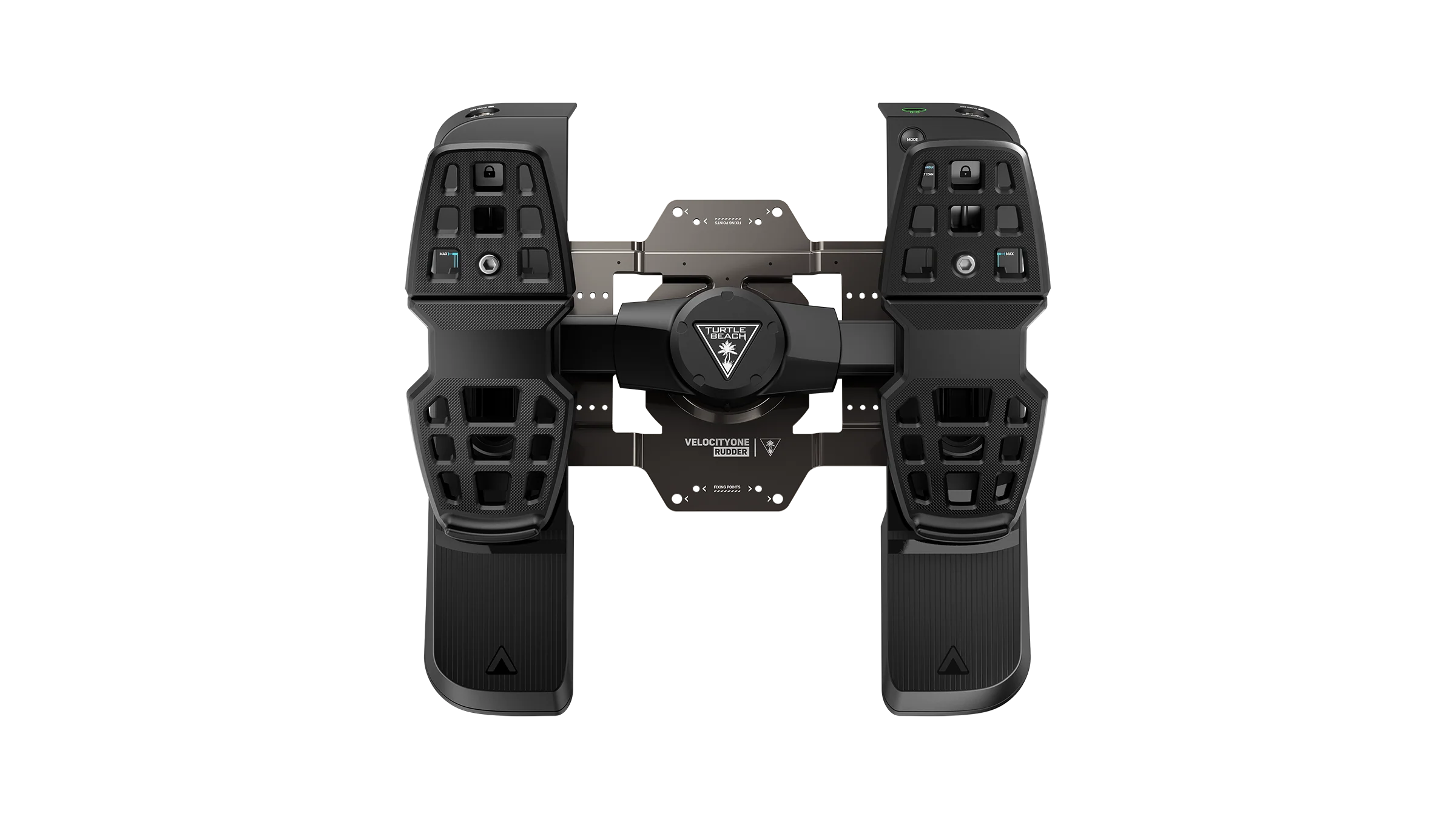 Take your flight simulation experience to a new level of realism with the Turtle Beach® VelocityOne® Rudder Pedals for Windows 10 & 11 PCs, Xbox Series X|S* & Xbox One*. A smooth rudder axis, and non-contact hall-effect sensors on all axes deliver fluid movements and longer product life with zero maintenance versus standard potentiometers. Differential brakes allow tight turns and precise runway braking control while swappable springs, adjustable pedal width and shape provide added realism whether you’re flying a light aircraft, heavy airliner, or fighter jet. Plus, multiple stable mounting solutions keep the pedals firmly planted on a variety of surfaces. *Requires VelocityOne® Flight Universal Control System when in use with Xbox consoles.